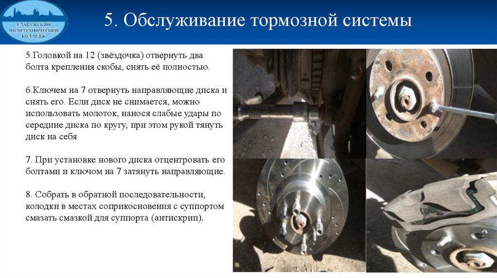 5. Обслуживание тормозной системы5.Головкой на 12 (звёздочка) отвернуть два