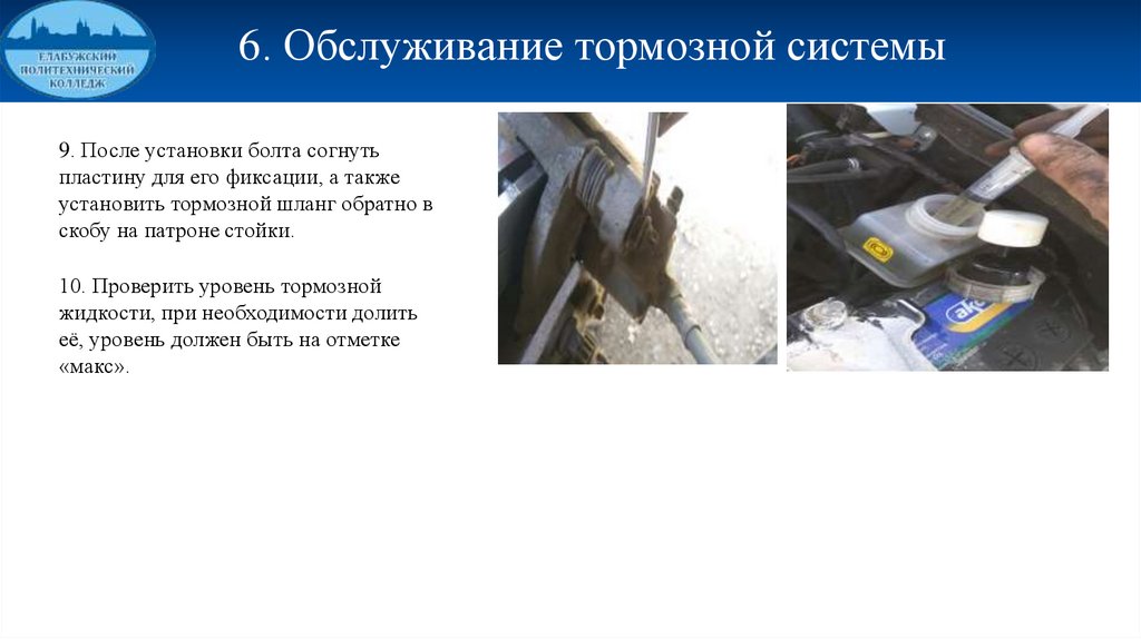 6. Обслуживание тормозной системы9. После установки болта согнуть