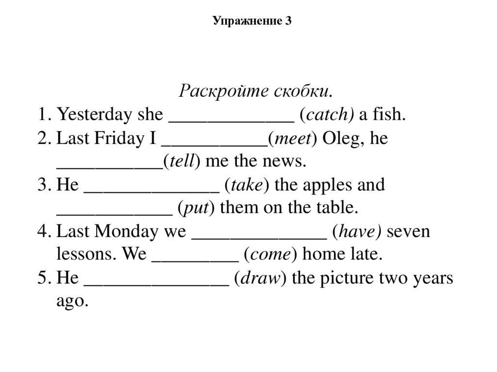 •I (go) to London last year.•We (be) happy when we (see) granny.
