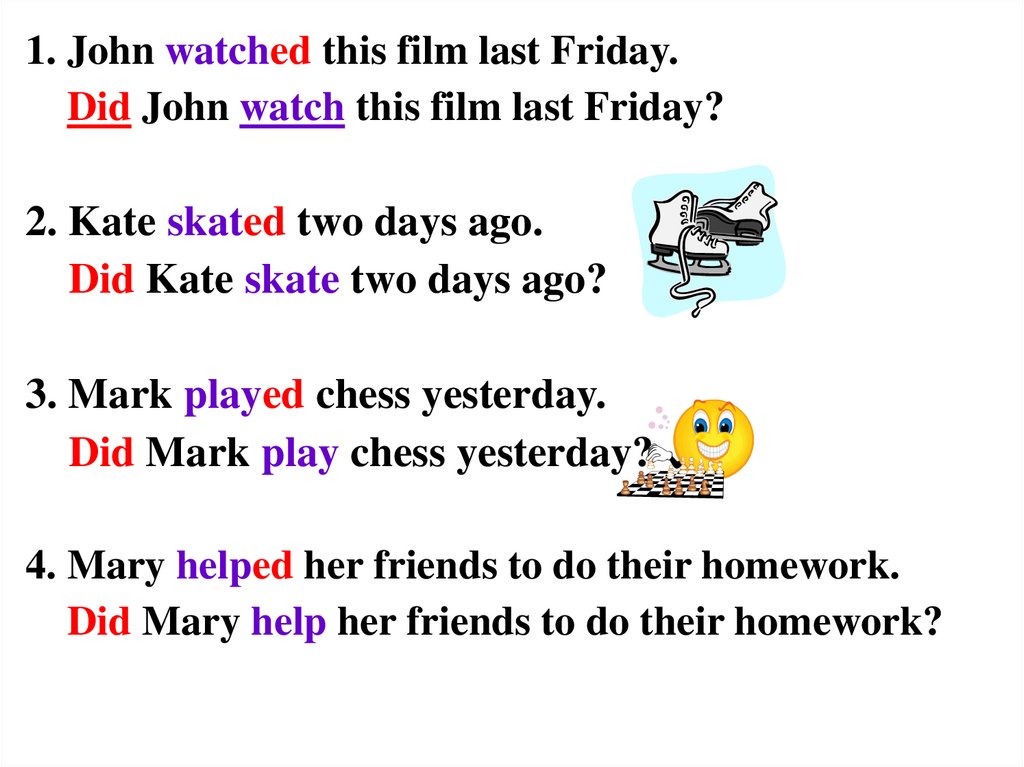 1. John watched this film last Friday.Did John watch this film last Friday?