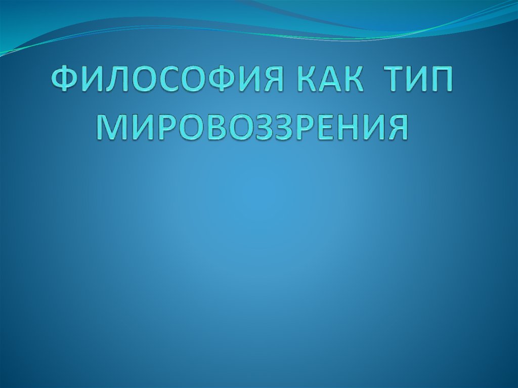 ФИЛОСОФИЯ КАК ТИП МИРОВОЗЗРЕНИЯ