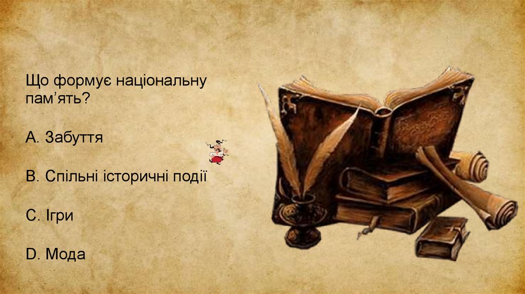 Національна пам’ять належитьусьому народові. Вона охоплює важливі