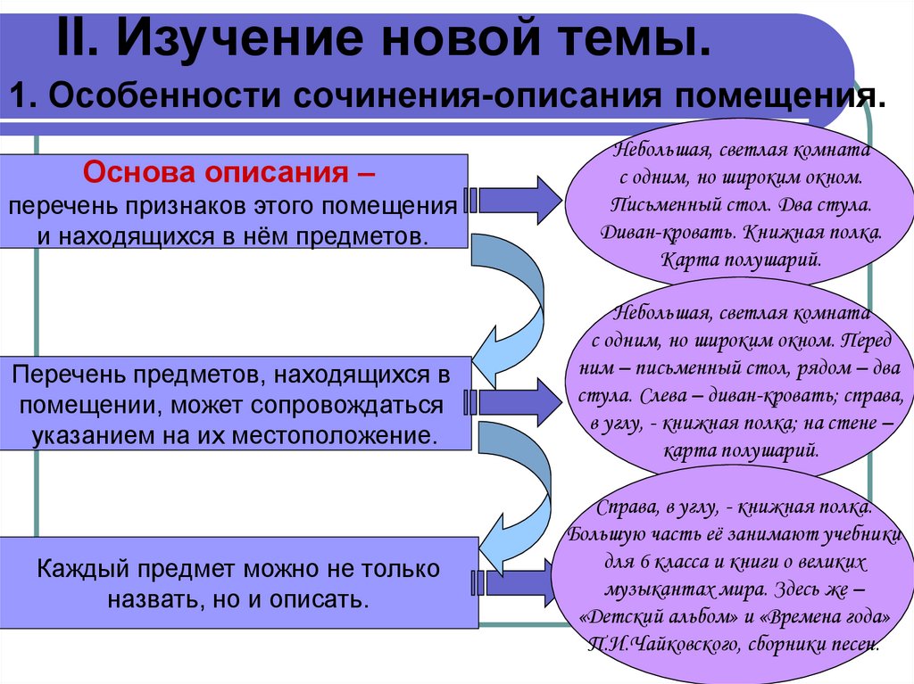 II. Изучение новой темы.1. Особенности сочинения-описания помещения.