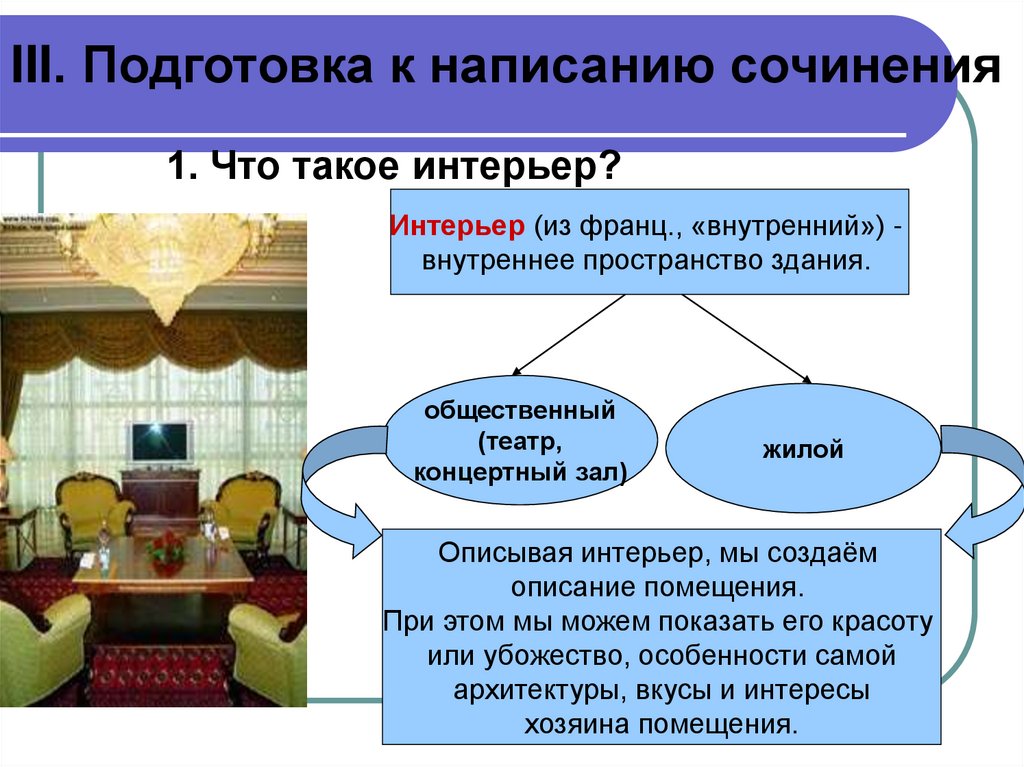III. Подготовка к написанию сочинения1. Что такое интерьер?