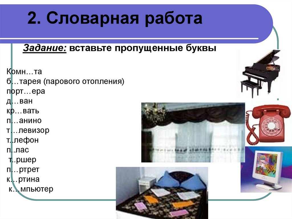 2. Словарная работаЗадание: вставьте пропущенные буквы