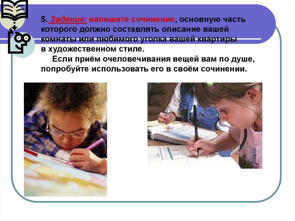 5. Задание: напишите сочинение, основную частькоторого должно составлять описание вашей