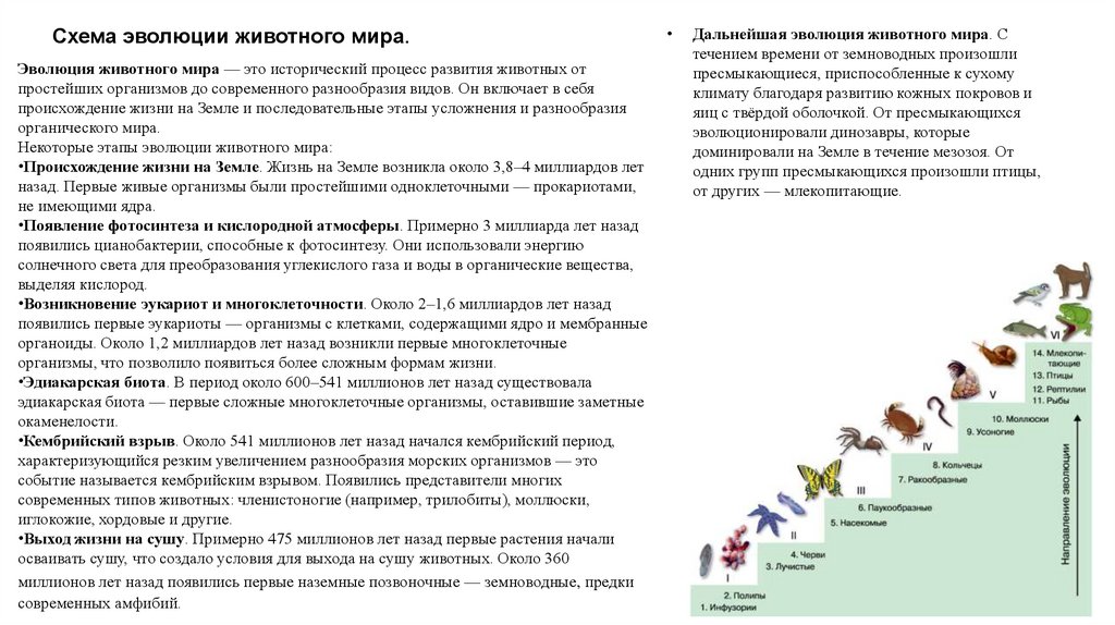 Схема эволюции животного мира.Эволюция животного мира — это исторический процесс развития животных от