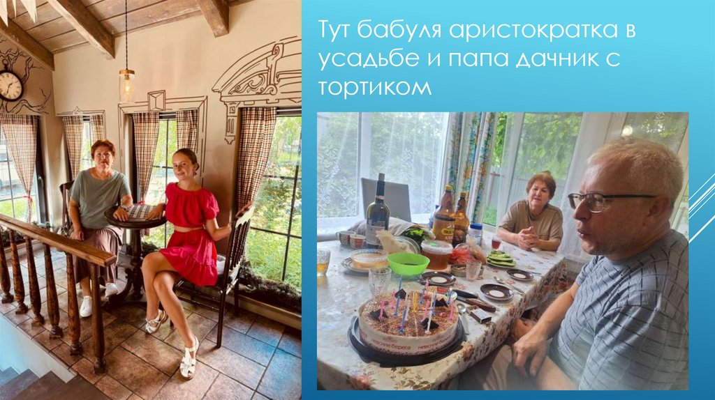 Тут бабуля аристократка вусадьбе и папа дачник с