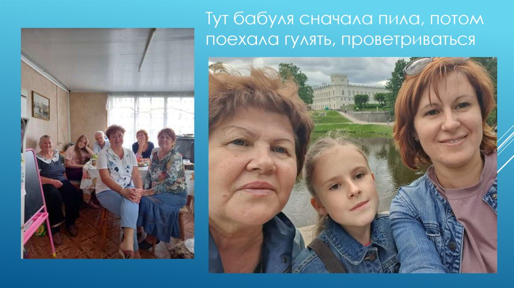 Тут бабуля сначала пила, потомпоехала гулять, проветриваться