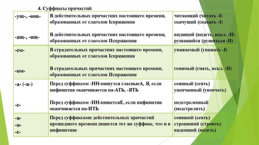 4. Cуффиксы причастийВ действительных причастиях настоящего времени,