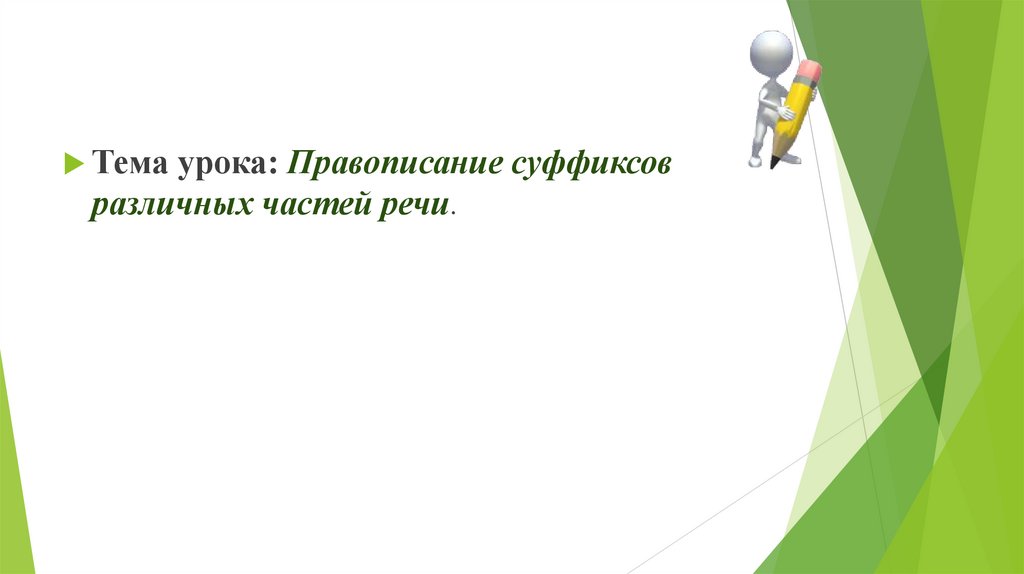 Тема урока: Правописание суффиксовразличных частей речи.
