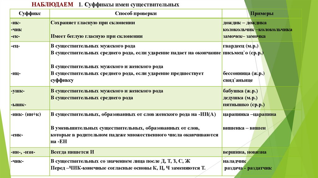 НАБЛЮДАЕМ 1. Суффиксы имен существительныхСуффикс