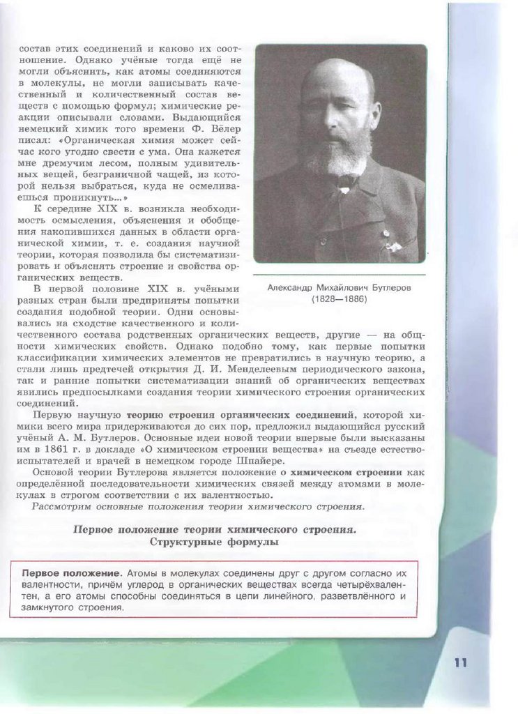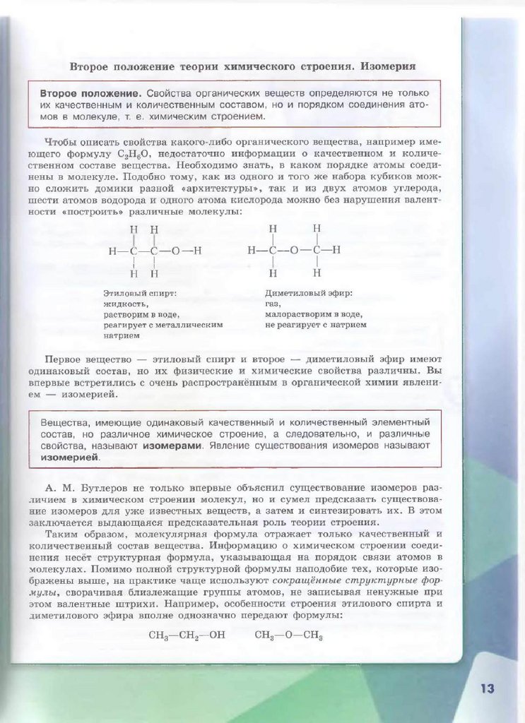 химии, а теория строения органических соединений А. М. Бутлерова — теоре