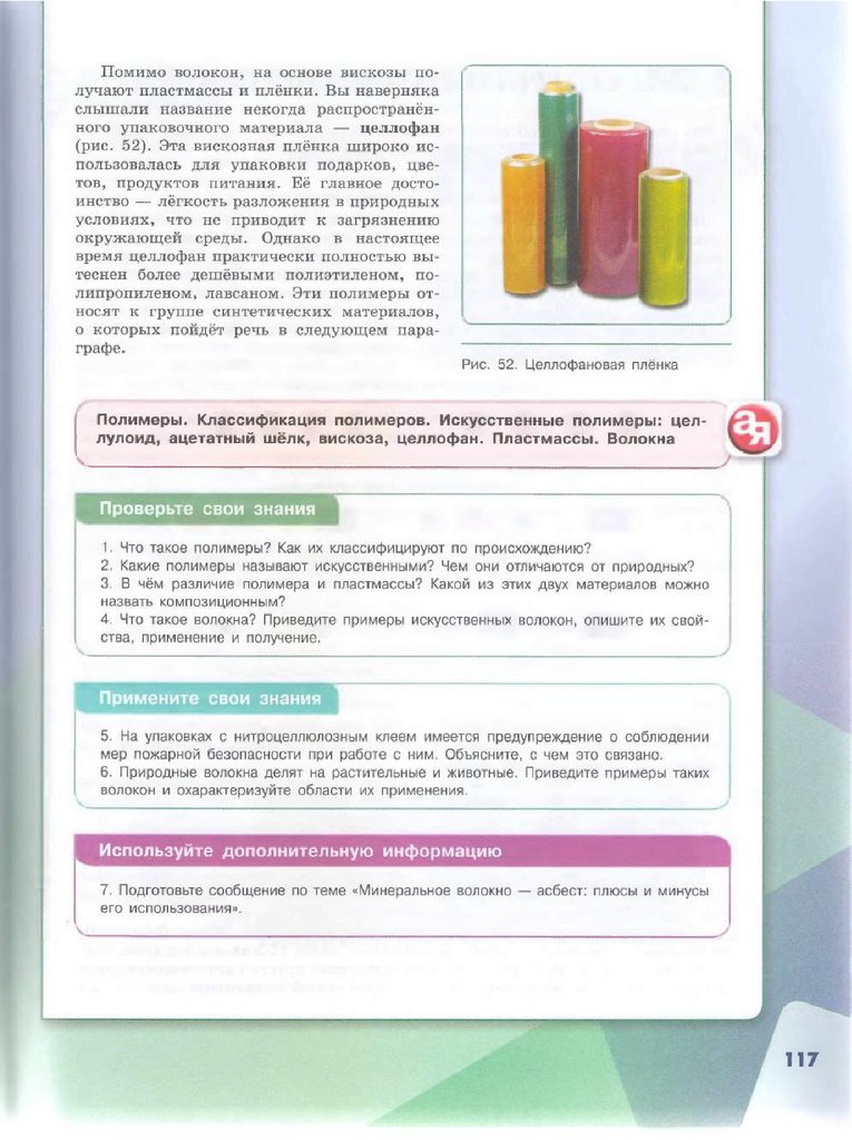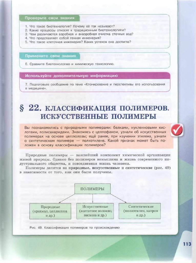 § 22. Классификация полимеров. Искусственные полимеры...........................