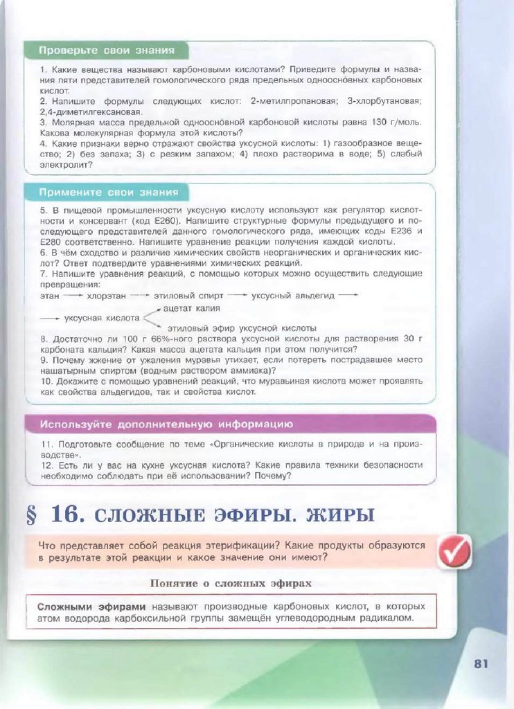 спиртами, органическими кислотами. В курсе 10 класса вам предстоит более
