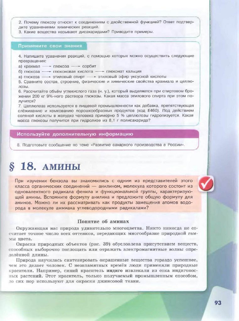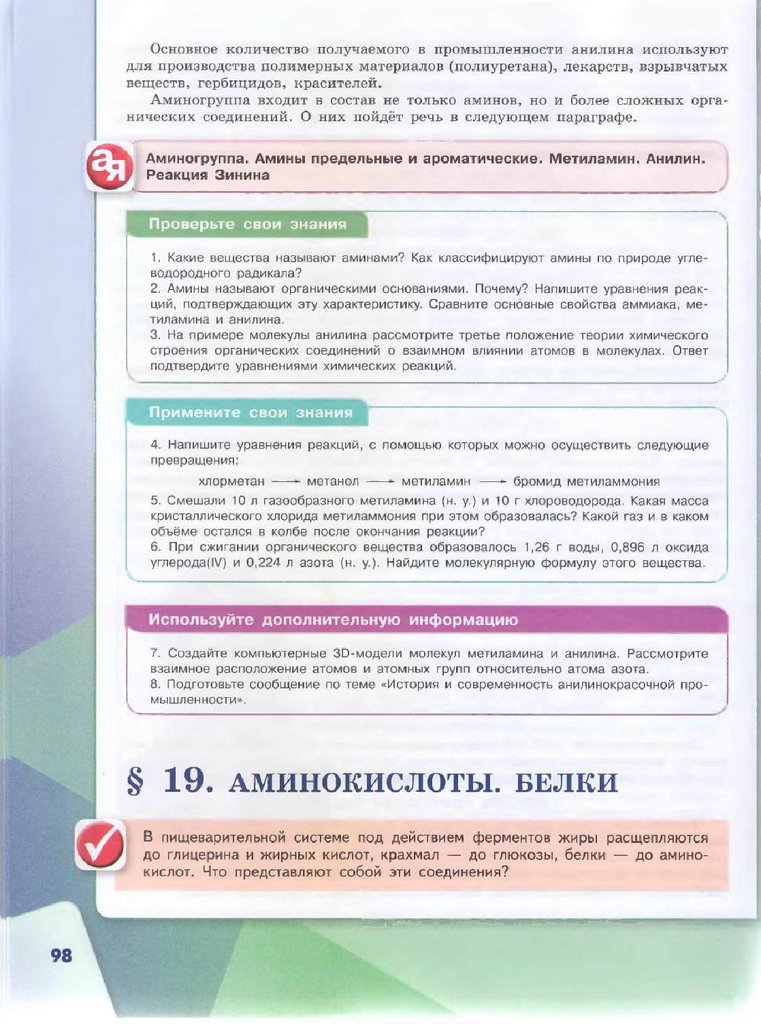 § 18. 5. m([CH 3NH 2]Cl) = 14,5 г; F(CH 3NH2) = 3 ,8 5 л. 6 . C2H 5NH2.