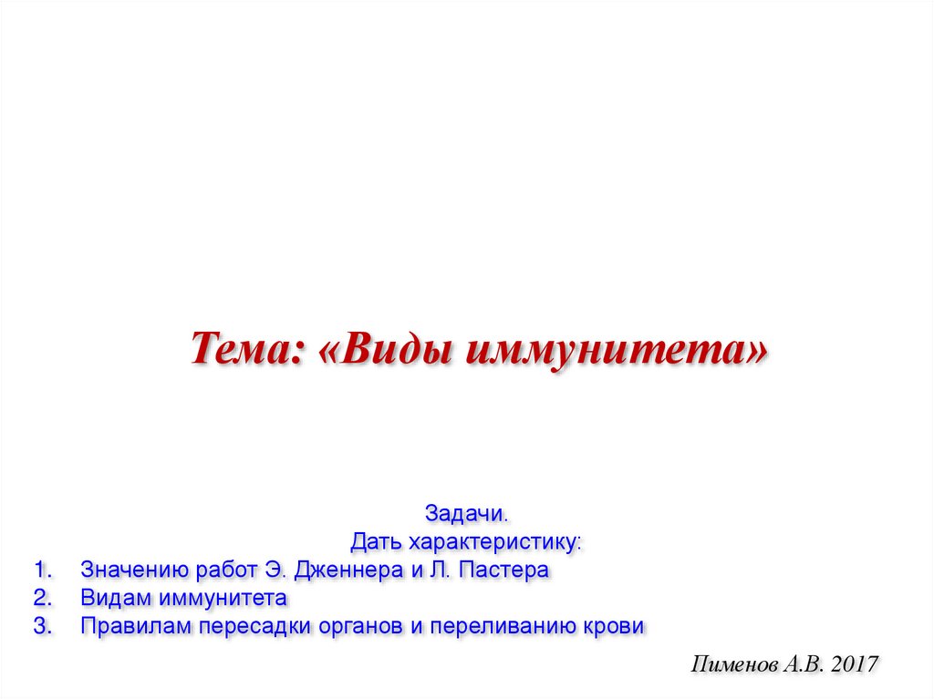 Тема: «Виды иммунитета»1.