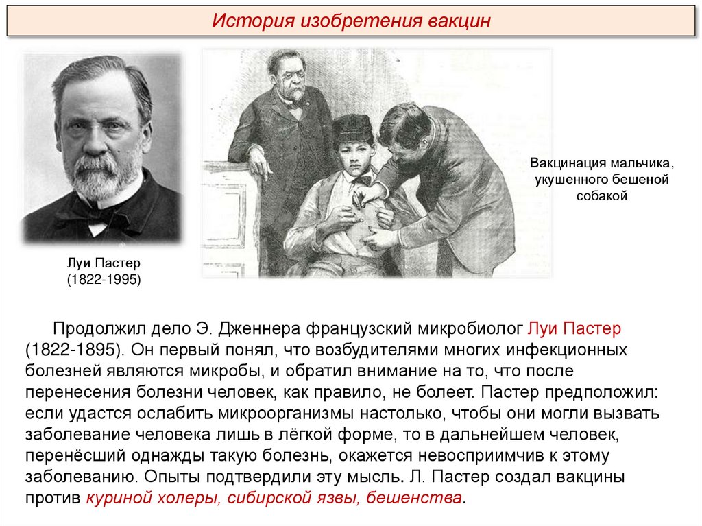 (1822-1895). Он первый понял, что возбудителями многих инфекционных