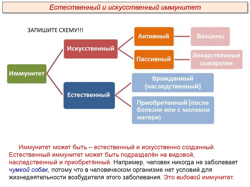 Естественный и искусственный иммунитетЗАПИШИТЕ СХЕМУ!!!