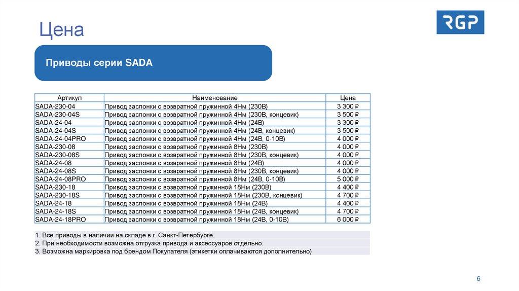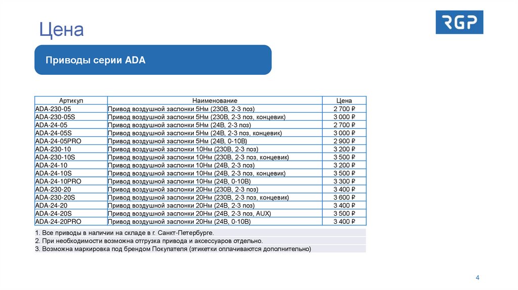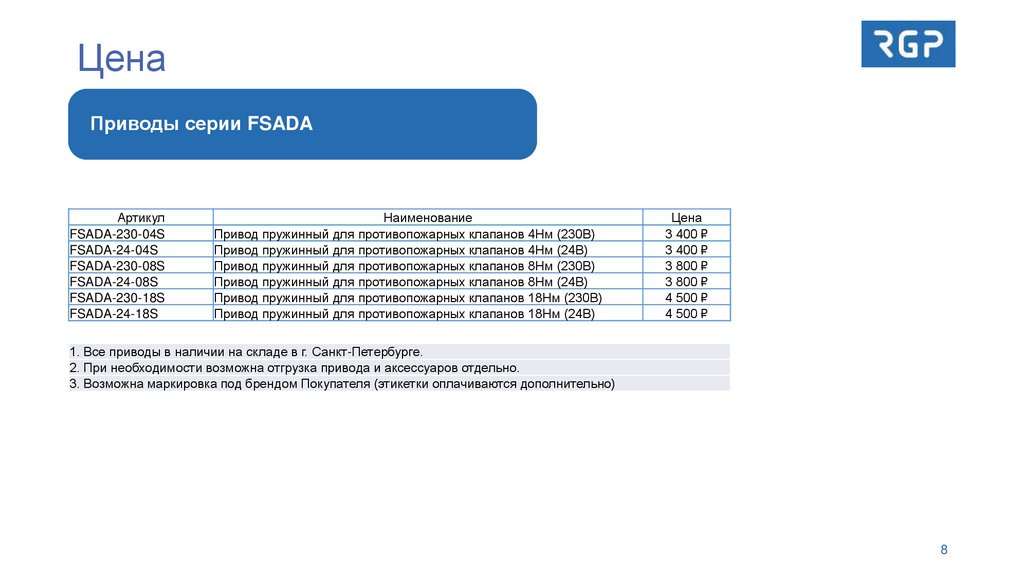 1. Все приводы в наличии на складе в г. Санкт-Петербурге.