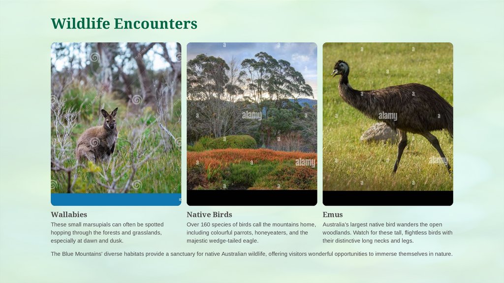 The Blue Mountains' diverse habitats provide a sanctuary for native Australian wildlife, offering visitors wonderful opportunities to immerse themselves in nature.