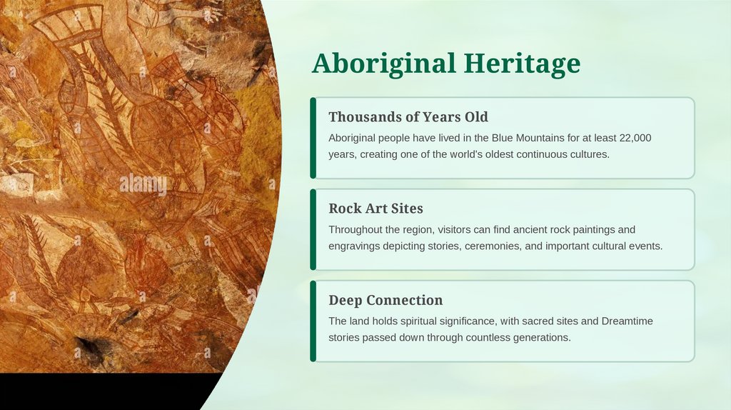 The land holds spiritual significance, with sacred sites and Dreamtime