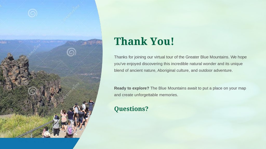 Thank You!Thanks for joining our virtual tour of the Greater Blue Mountains. We hope