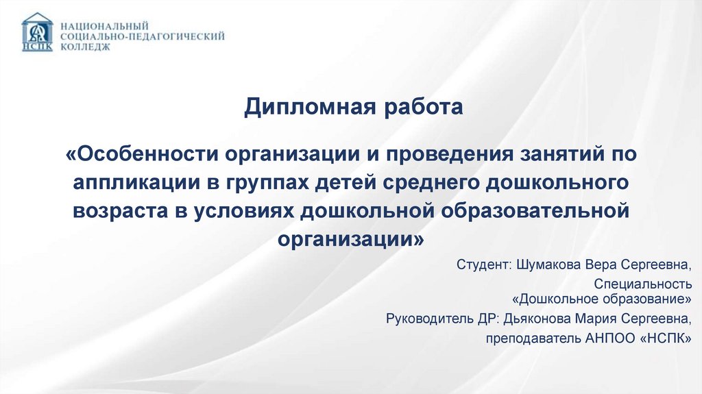 • Представить методику организации и проведения занятий по аппликации в