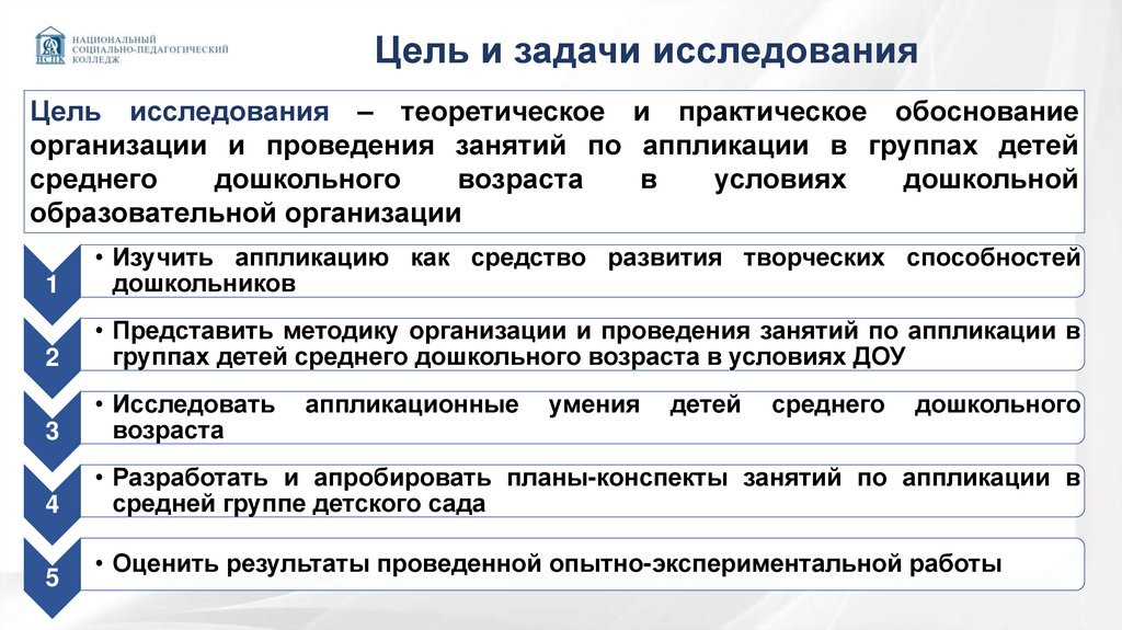 Цель и задачи исследованияЦель исследования – теоретическое и практическое обоснование