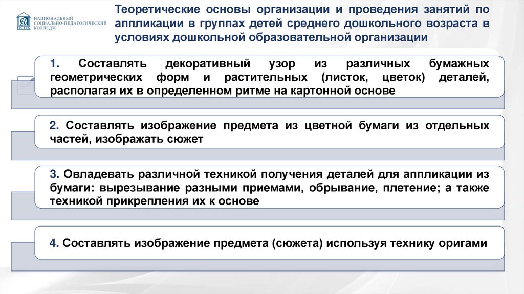 Теоретические основы организации и проведения занятий поаппликации в группах детей среднего дошкольного возраста в