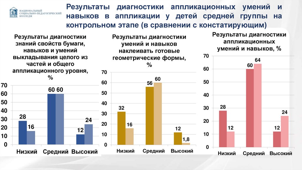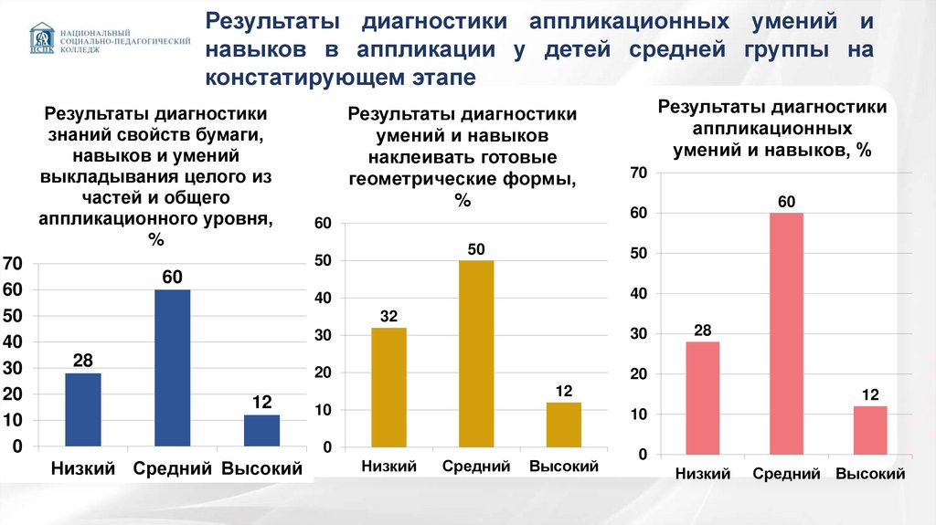 средний и высокий уровни аппликационных умений и навыков, в то время