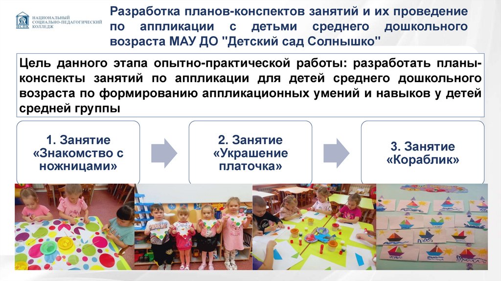 Цель данного этапа опытно-практической работы: разработать планыконспекты занятий по аппликации для детей среднего дошкольного