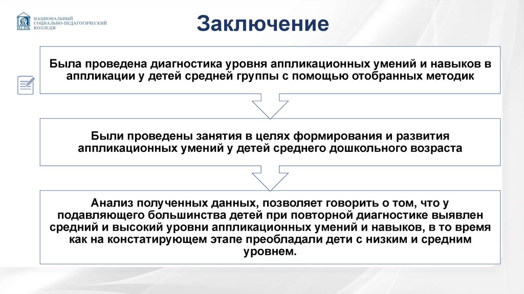 ЗаключениеБыла проведена диагностика уровня аппликационных умений и навыков в