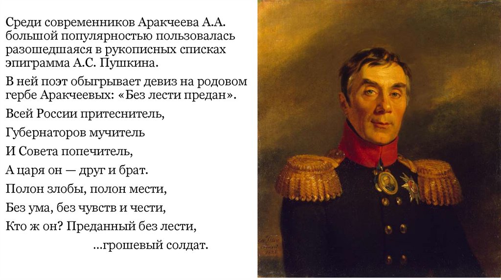 Среди современников Аракчеева А.А.большой популярностью пользовалась