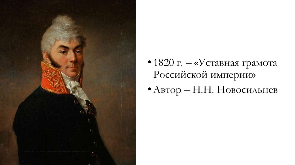 • 1820 г. – «Уставная грамотаРоссийской империи»