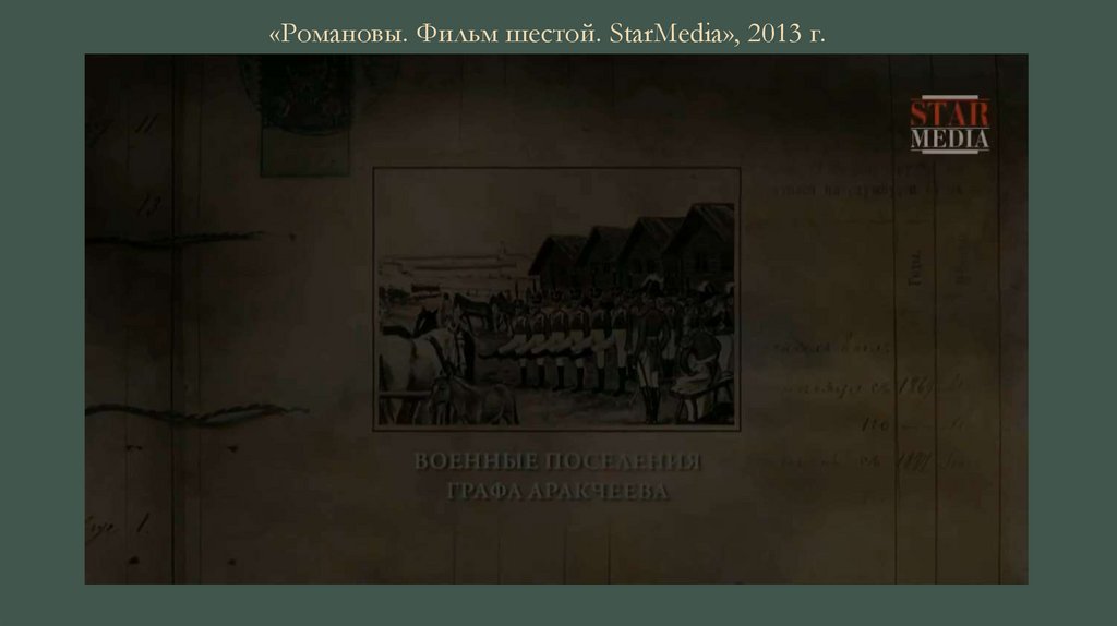 «Романовы. Фильм шестой. StarMedia», 2013 г.3. ВП - система организации войск в России, сочетавшая военную службу с занятием производительным трудом, прежде всего