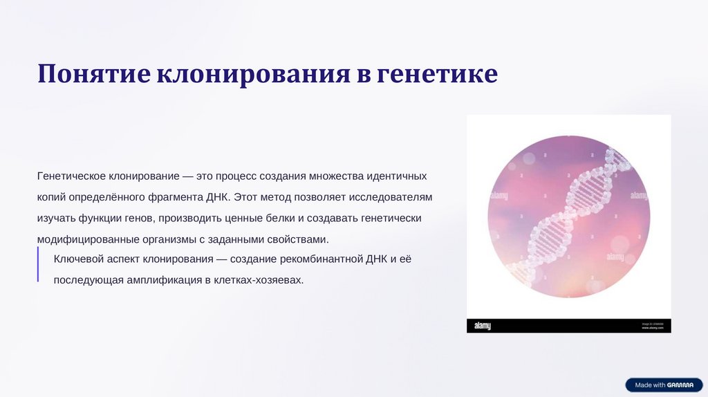 Понятие клонирования в генетикеГенетическое клонирование — это процесс создания множества идентичных
