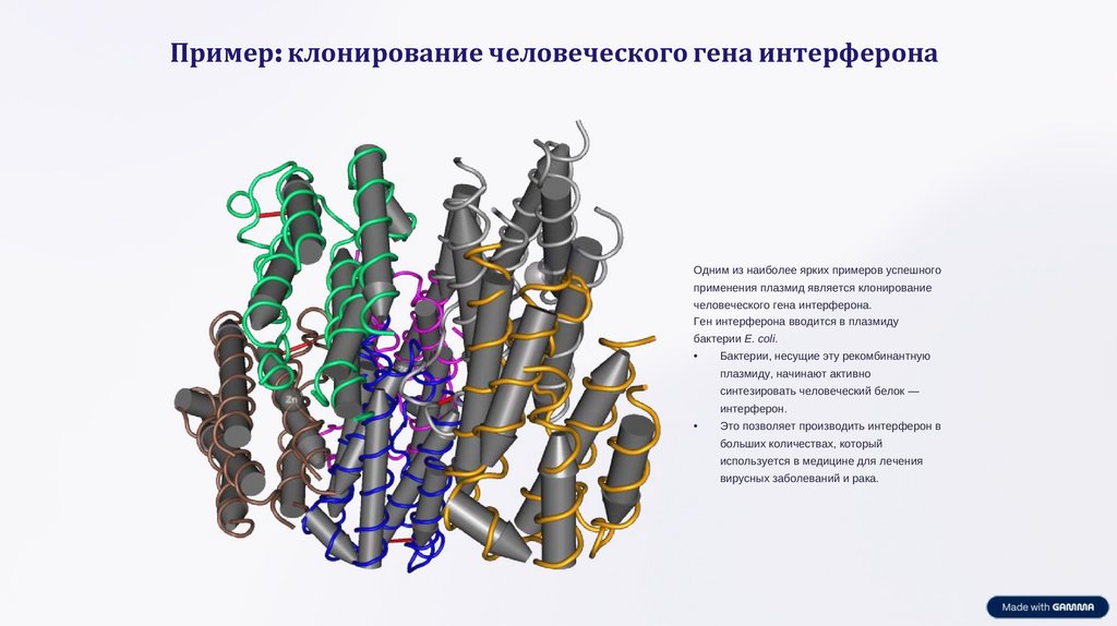 Пример: клонирование человеческого гена интерферонаОдним из наиболее ярких примеров успешного
