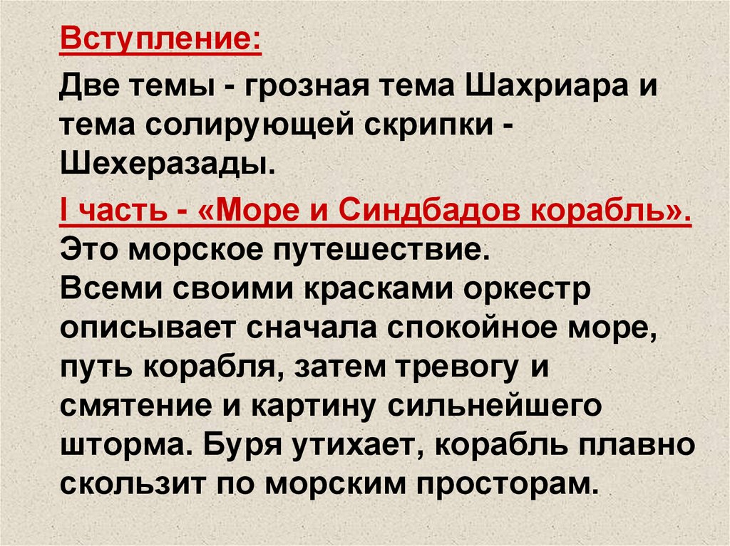 Вступление:Две темы - грозная тема Шахриара и