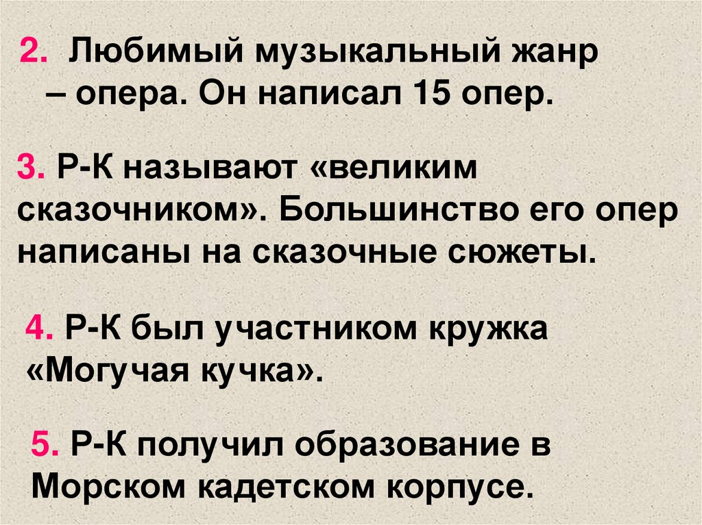 2. Римский – Корсаков – великий русский композитор, педагог, дирижер, музыкальный критик.