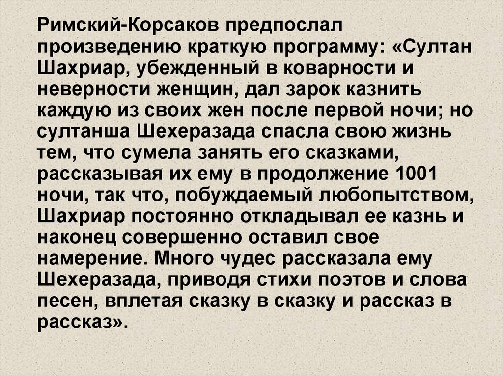 Римский-Корсаков предпослалпроизведению краткую программу: «Султан