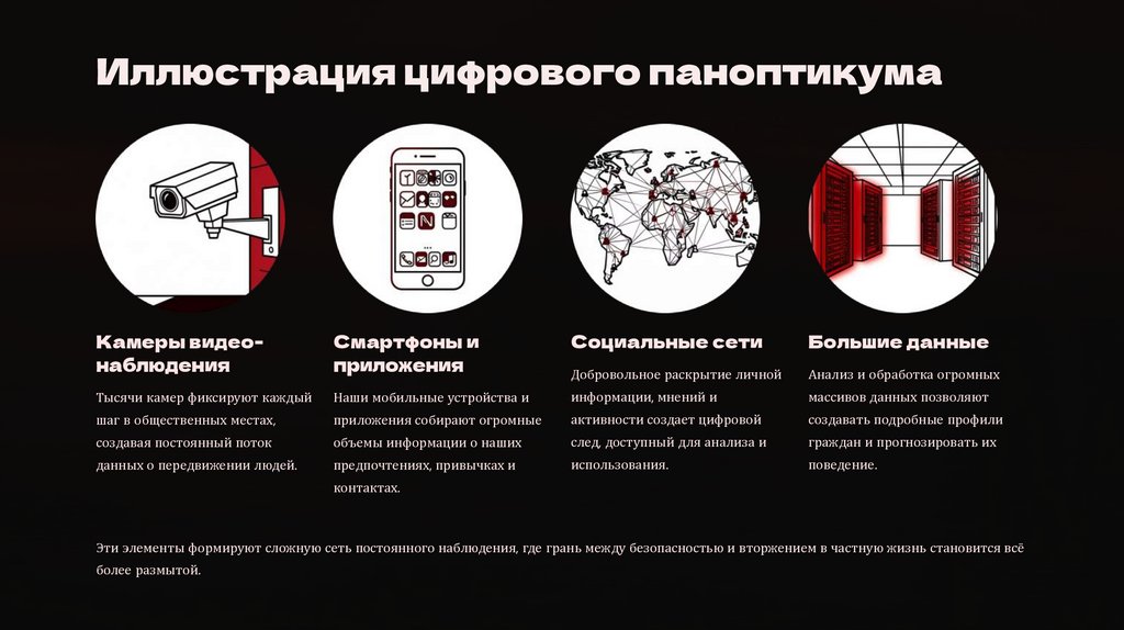 Иллюстрация цифрового паноптикумаКамеры видеонаблюдения