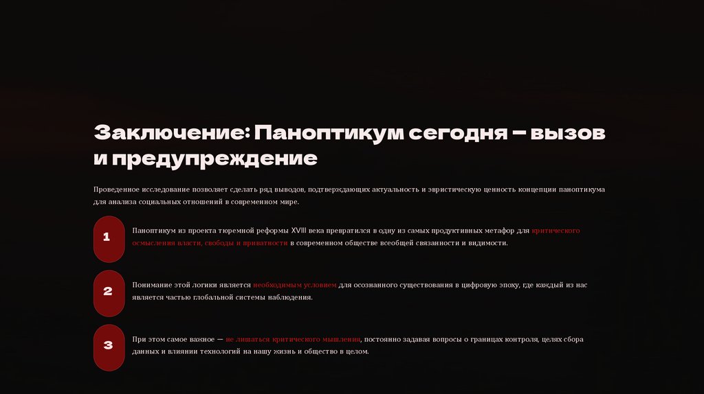 Заключение: Паноптикум сегодня — вызови предупреждение