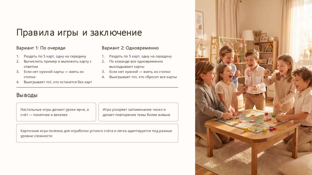 Карточная игра полезна для отработки устного счёта и легко адаптируется под разные