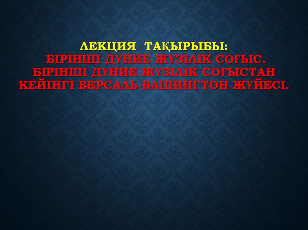 ЛЕКЦИЯ ТАҚЫРЫБЫ:БІРІНШІ ДҮНИЕ ЖҮЗІЛІК СОҒЫС.