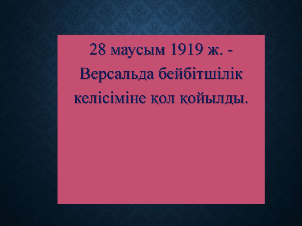 1. Лекция тақырыбы: Бірінші дүние жүзілік соғыс. Бірінші дүние жүзілік соғыстан кейінгі Версаль-Вашингтон жүйесі.