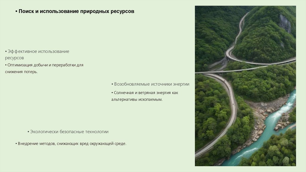 • Поиск и использование природных ресурсов• Эф ф ективное использование