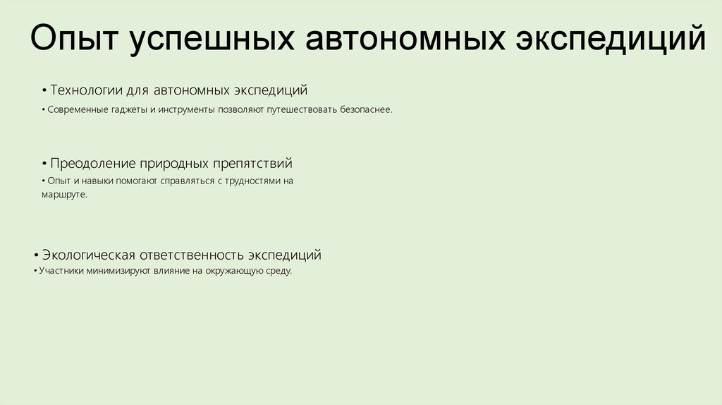 Опыт успешных автономных экспедиций• Технологии для автономных экспедиций