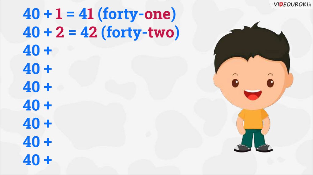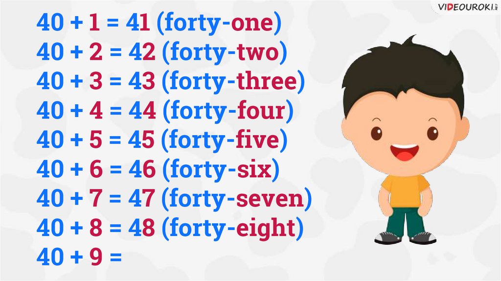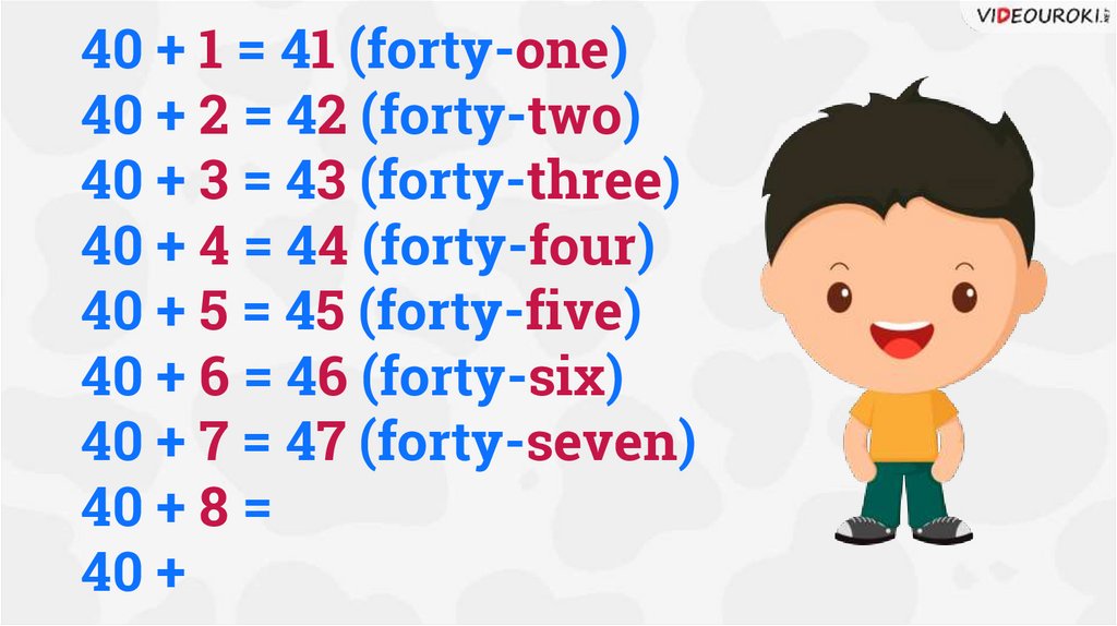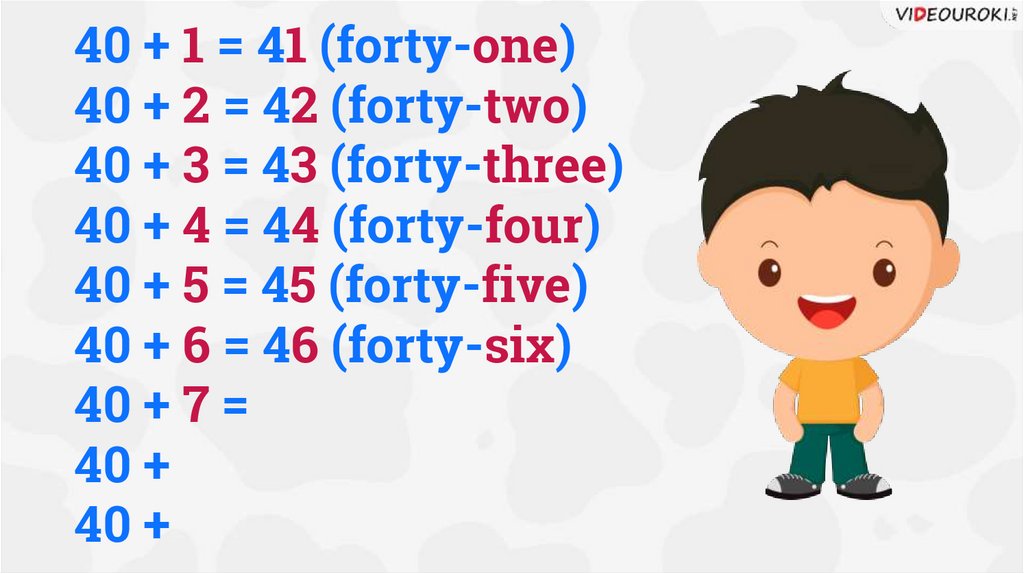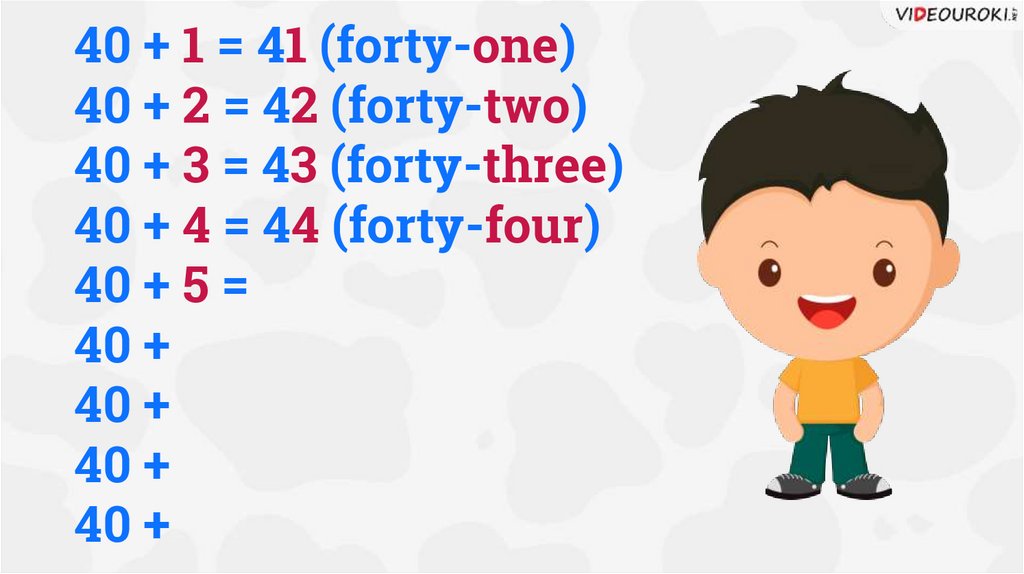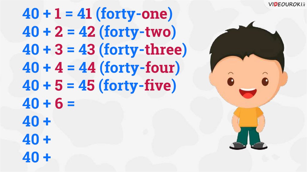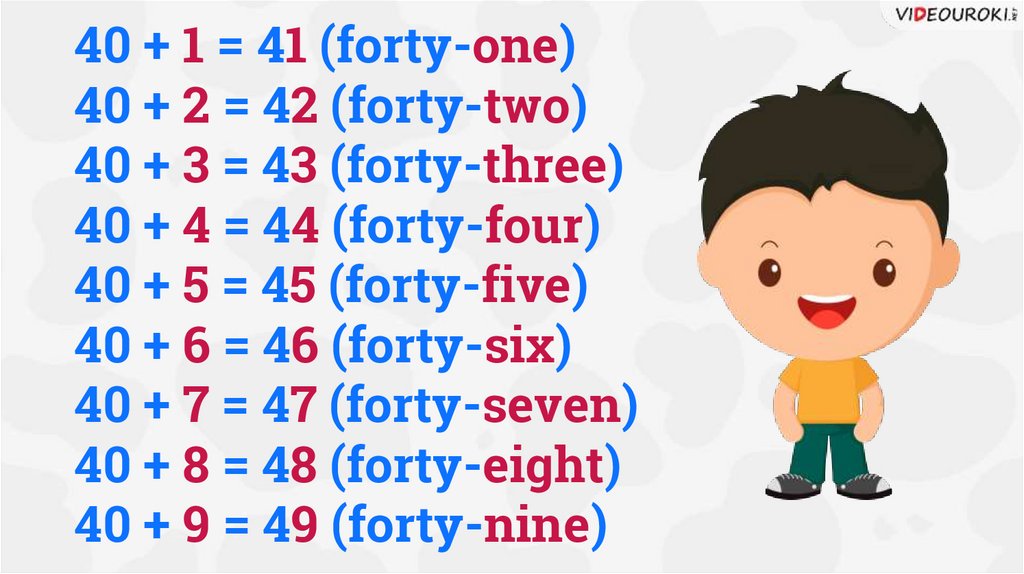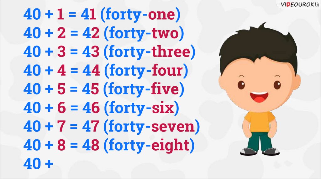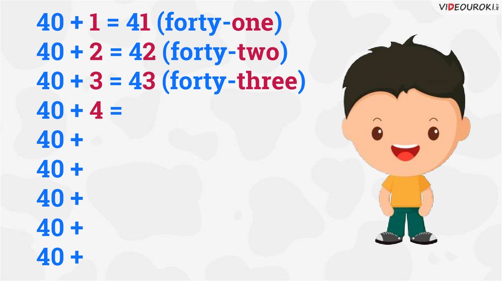 40 + 1 = 41 (forty-one)40 + 2 = 42 (forty-two)