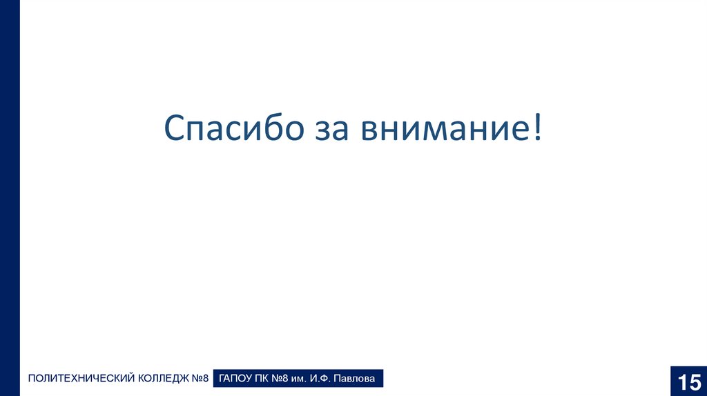 Спасибо за внимание!ПОЛИТЕХНИЧЕСКИЙ КОЛЛЕДЖ №8 ГАПОУ ПК №8 им. И.Ф. Павлова